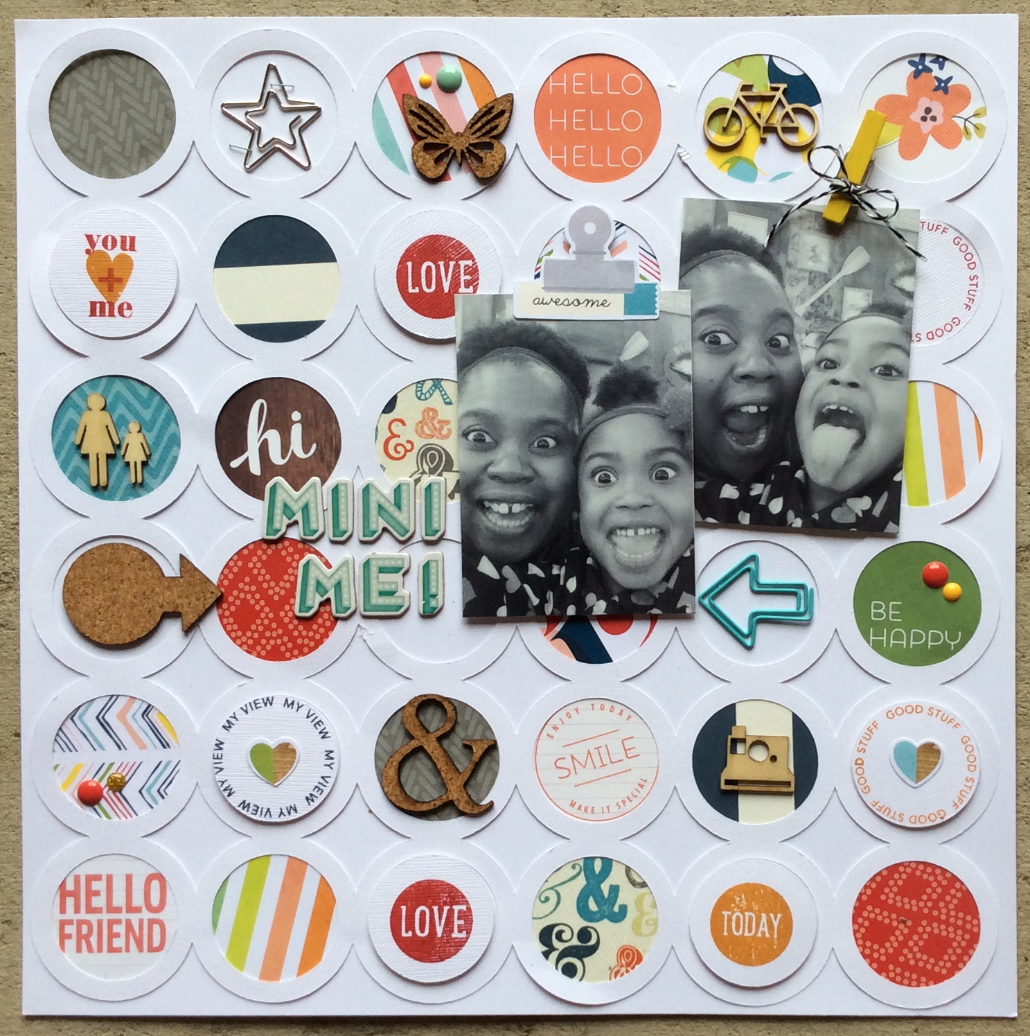 The photo I used is of me and my little Corinne. It is uncanny how much we look alike! Hence the title “Hi Mini Me”! I took this picture on Mother’s Day this year and really wanted to scrap it for our family album. I adore my little girl and I love to capture these fun little moments. She won’t be little for too long.