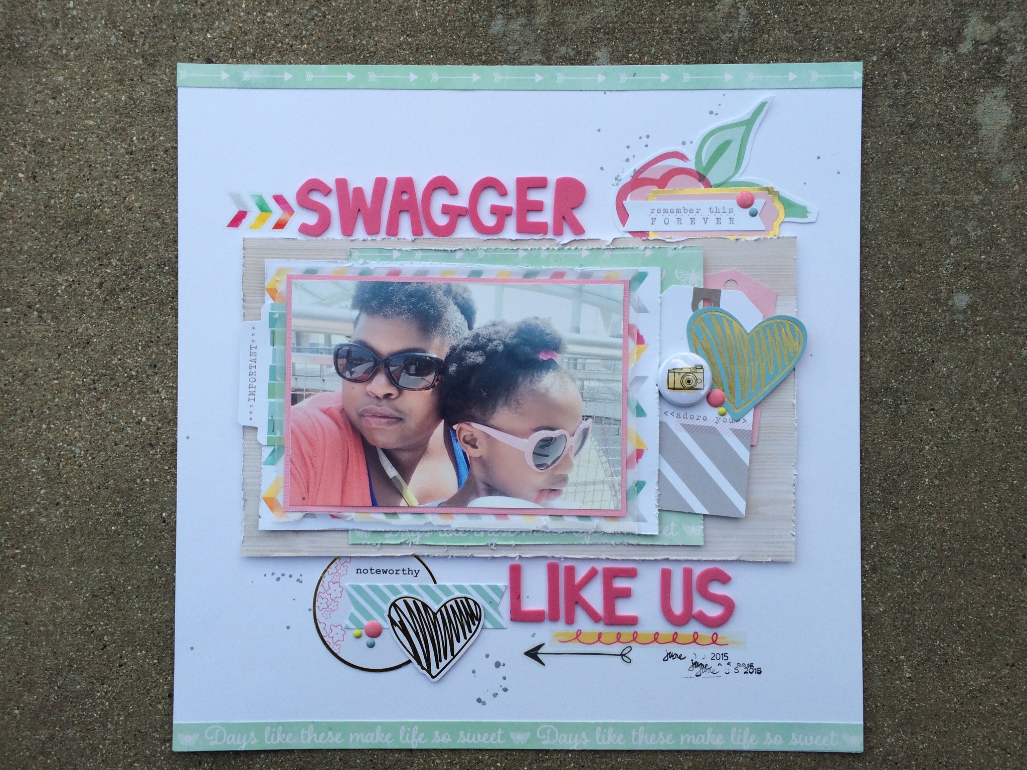 Layering is very fun…all you need is a few coordinating papers and a basic design idea and you are good to go. Simply positioning layers of paper and embellishments in a creative way can add so much volume to a layout!