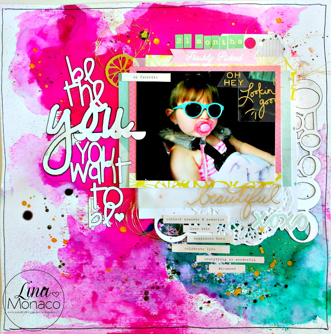 I am so happy to have the opportunity to team up with the talented Lina Monaco from Sweet Nothings Paper Co! I first heard about Lina on YouTube and immediately fell in love with her scrapbooking style! We became quick fast friends via Facebook and YouTube and decided that we had to collaborate on a scrappy project!