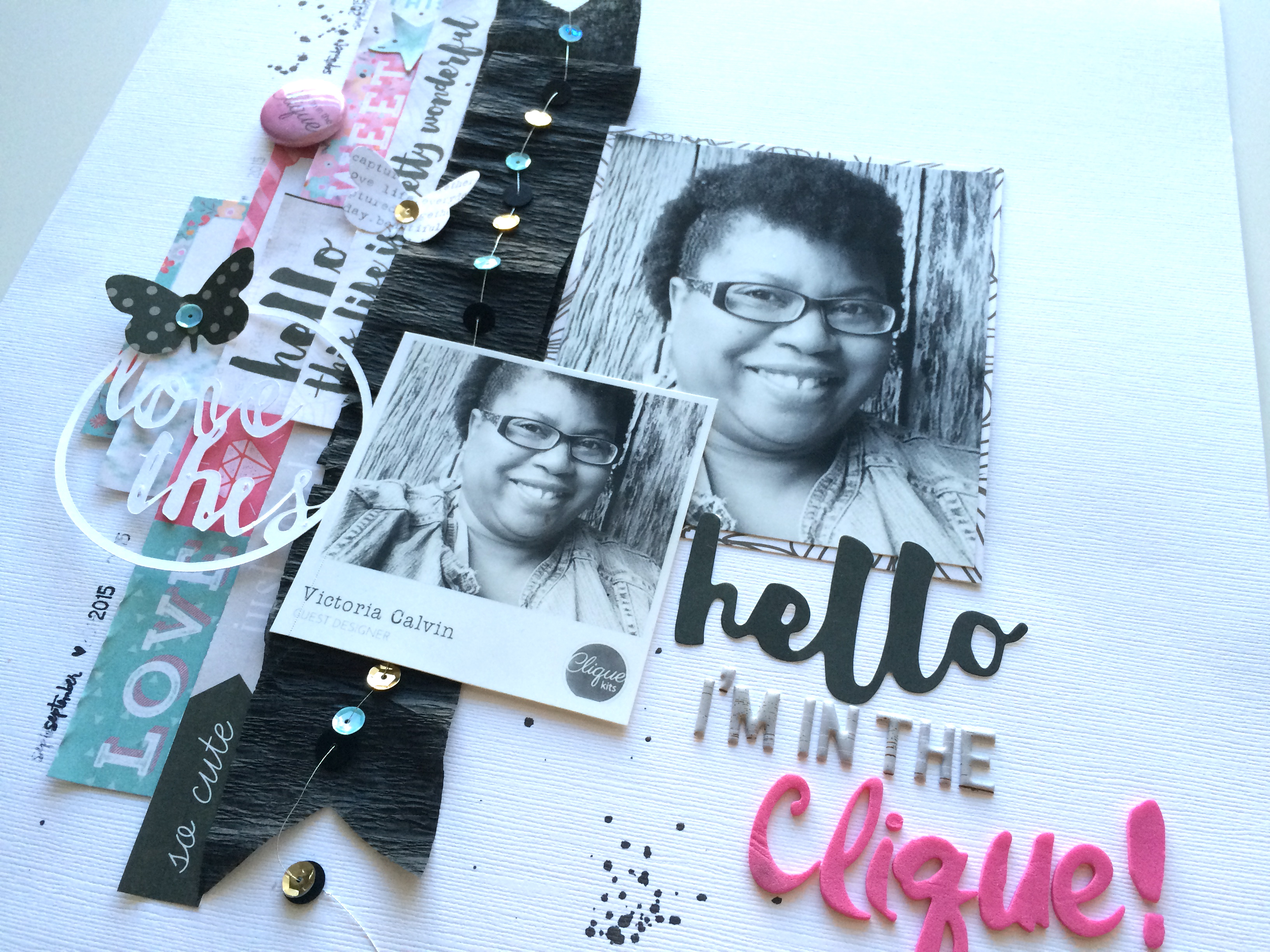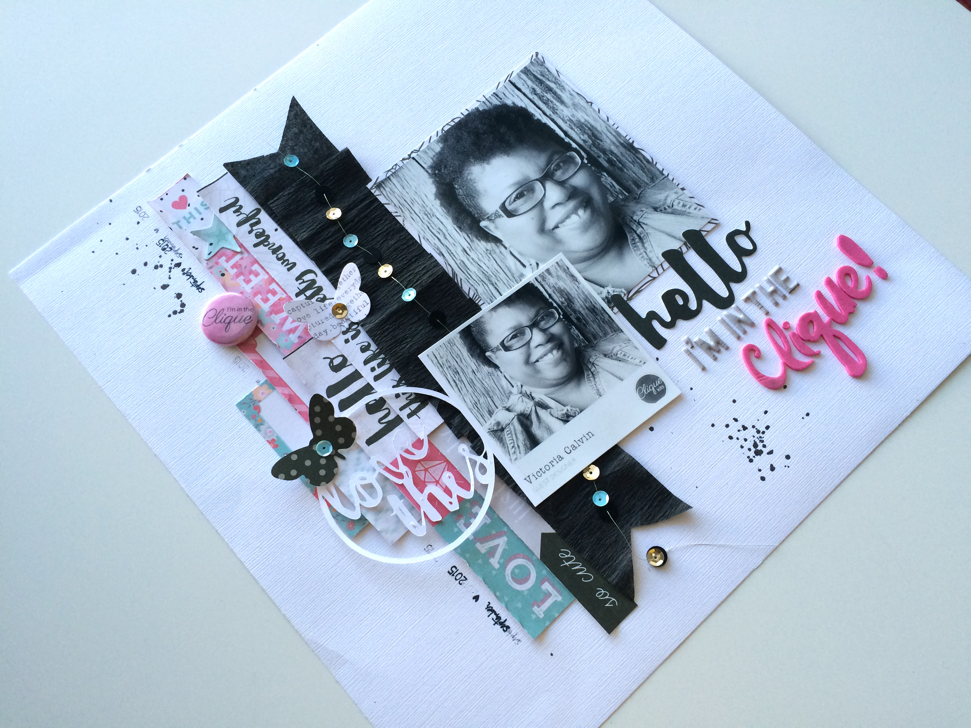 It took me less than 20 minutes to put this layout together! I love the overall relaxed look and I am so happy with the finished product! And I am glad to be a part of the Clique!