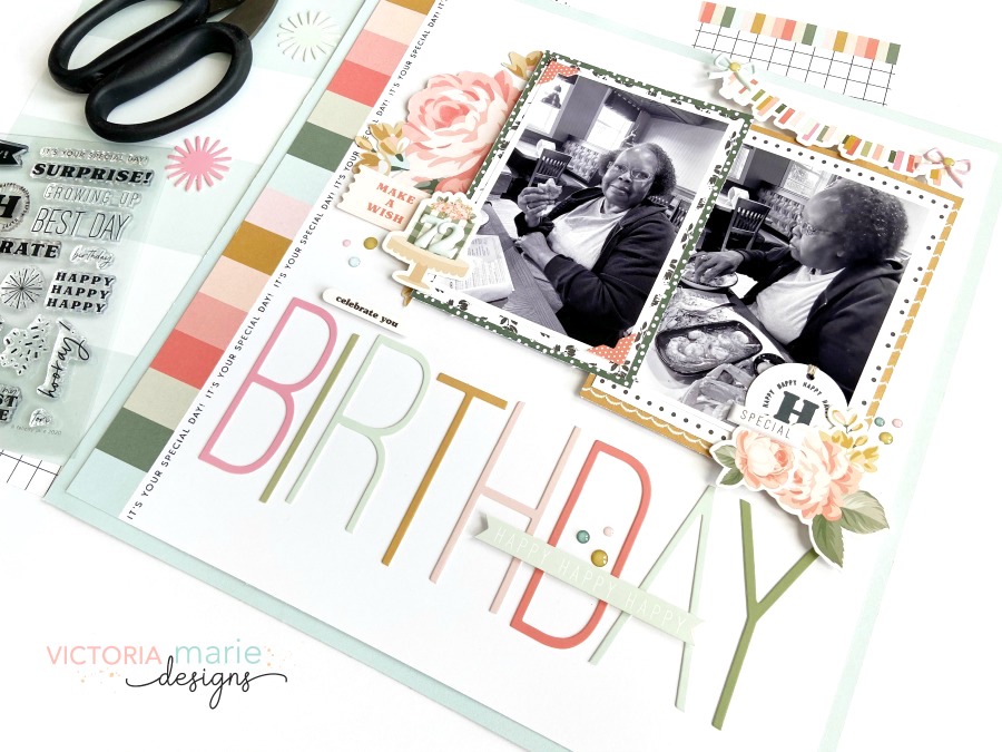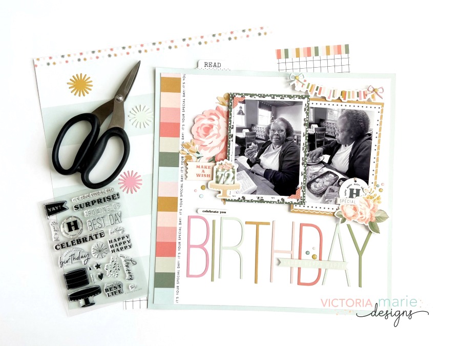 During this live session, I created a 12 x 12 scrapbook layout featuring the Tori Kit by Felicity Jane.