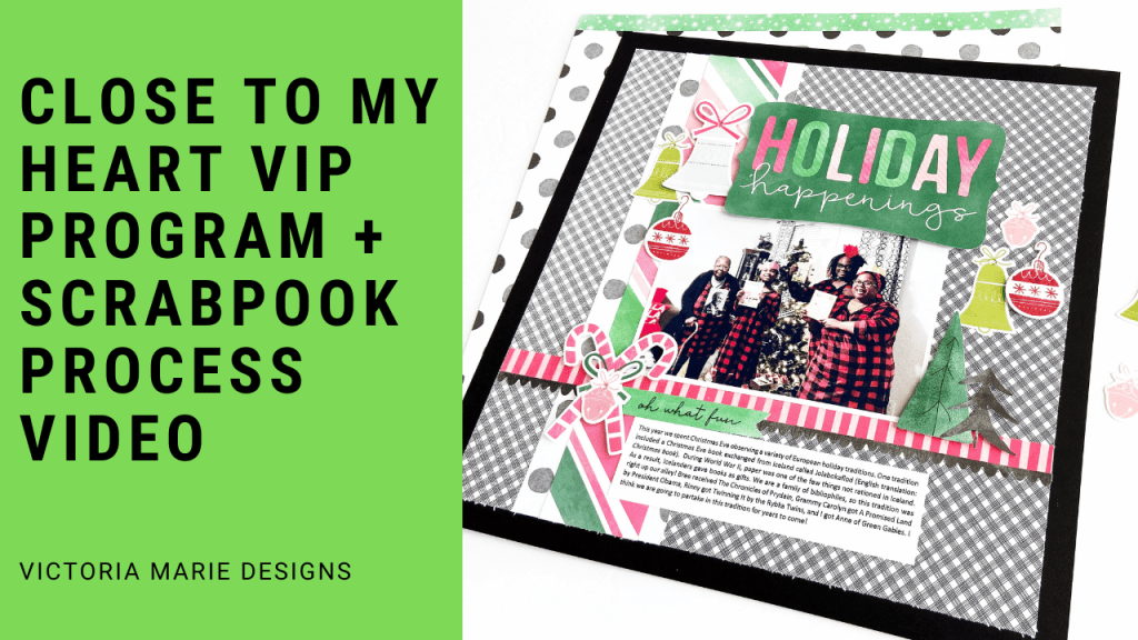 Today on the Victoria Marie YouTube Channel, I am sharing information about the Close to My Heart VIP Customer Program in addition to a 12×12 layout using the Close to My Heart Jingle Joy Collection and scrapbook stamp set!