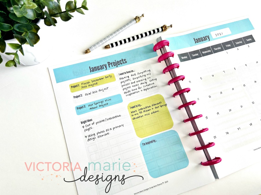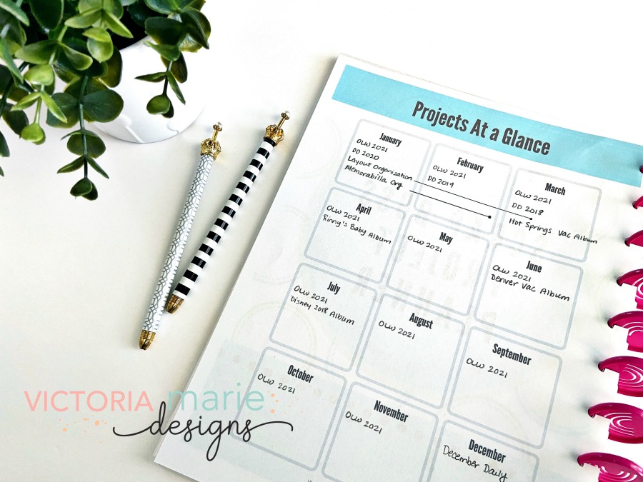 The Scrap Boss Project Planner is very functional! I love that I can plan my scrapbooking projects per month. That way I don’t feel overwhelmed and I can set realistic creative goals…and get projects DONE!