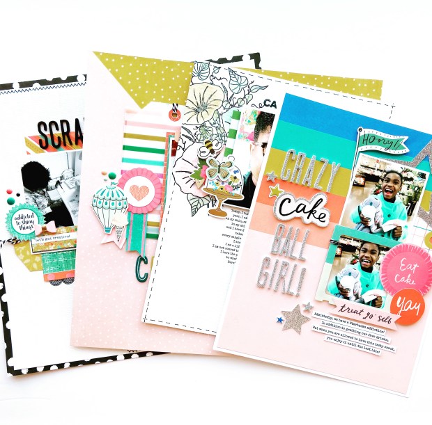 Week 1: Master Layering – Students will learn how to create a layered scrapbook design (from background to embellishments) using my three-step layering process (anchor, stack the deck, finishing details). A focus on pattern, texture, size, and scale will be discussed. Students will create two projects using the techniques in this lesson.