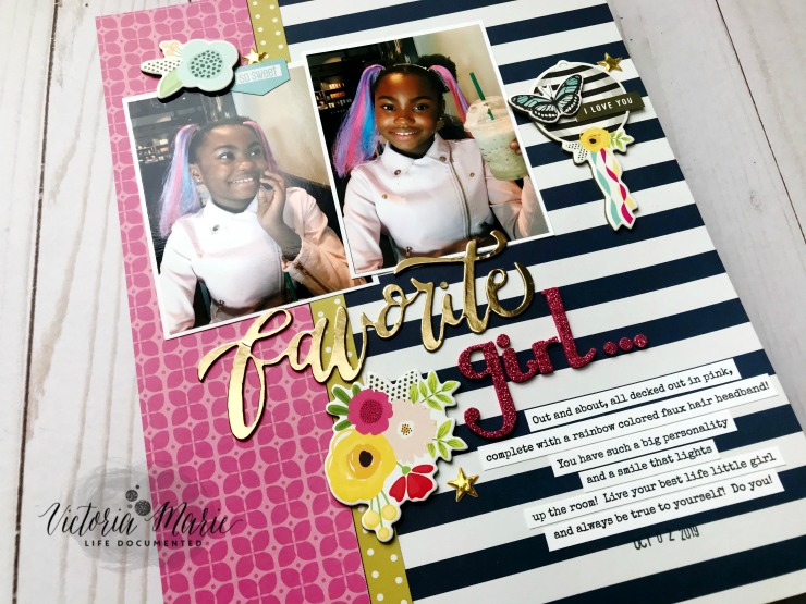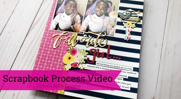 Time for another fun scrapbook process video! This video features an 8.5 x 11 layout called Favorite Girl. Lately, I have been documenting a lot about my daughter Corinne’s growth and development, her changing preferences, and the fact that she is slowing entering into the preteen years.