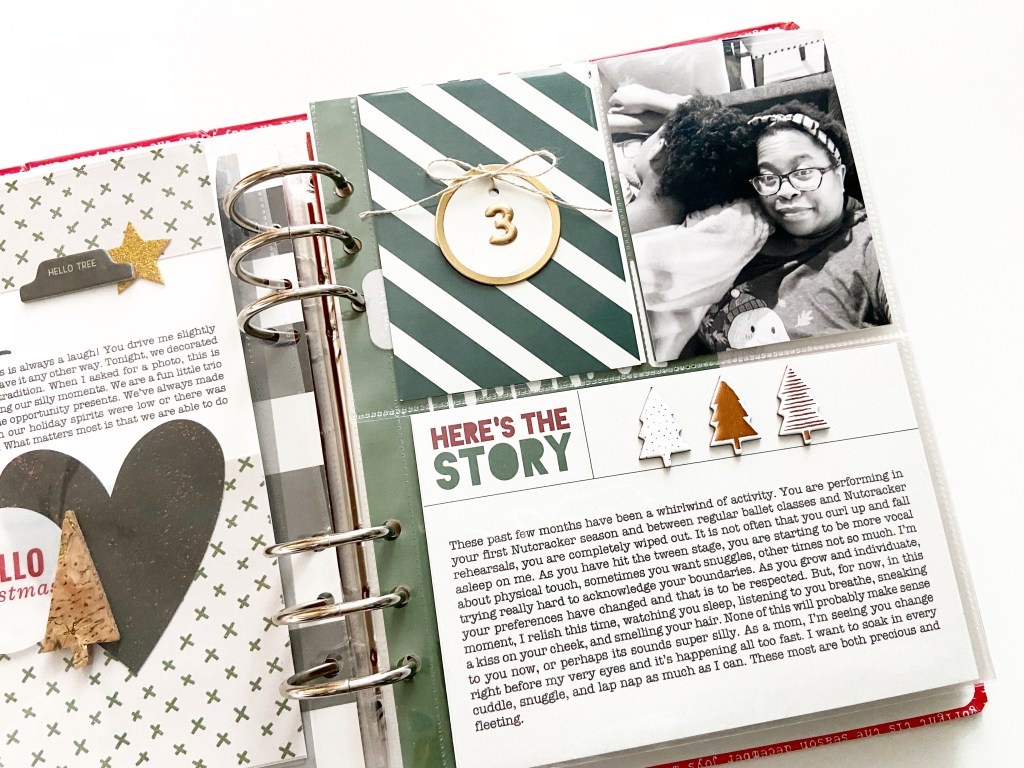 For 2022, I decided to repurpose my unused 2018 December Daily album and stash, mainly because I could not justify buying new products this year (I have plenty). My plan is to document a variety of stories this month – current, past, my holiday favorites, life-course transitions, and everything in between. This process allows me to be flexible and fluid with my storytelling versus worrying about finding a story to document on a specific day.